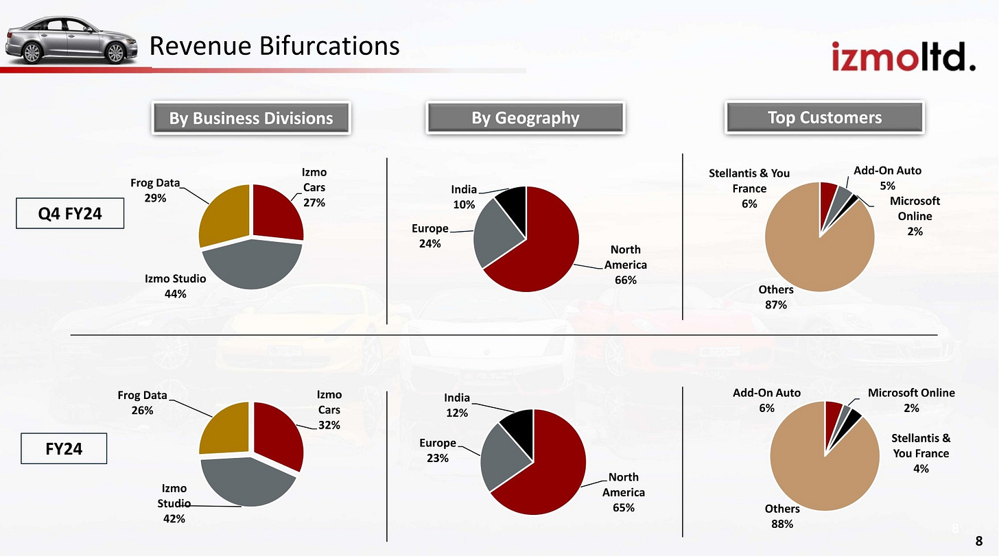 Izmo ltd. Is into the business of interactive marketing solutions. The company offers hi-tech automotive e-retailing solutions in North America, Europe, and Asia. The company, founded in 1995, is listed on the BSE and NSE.